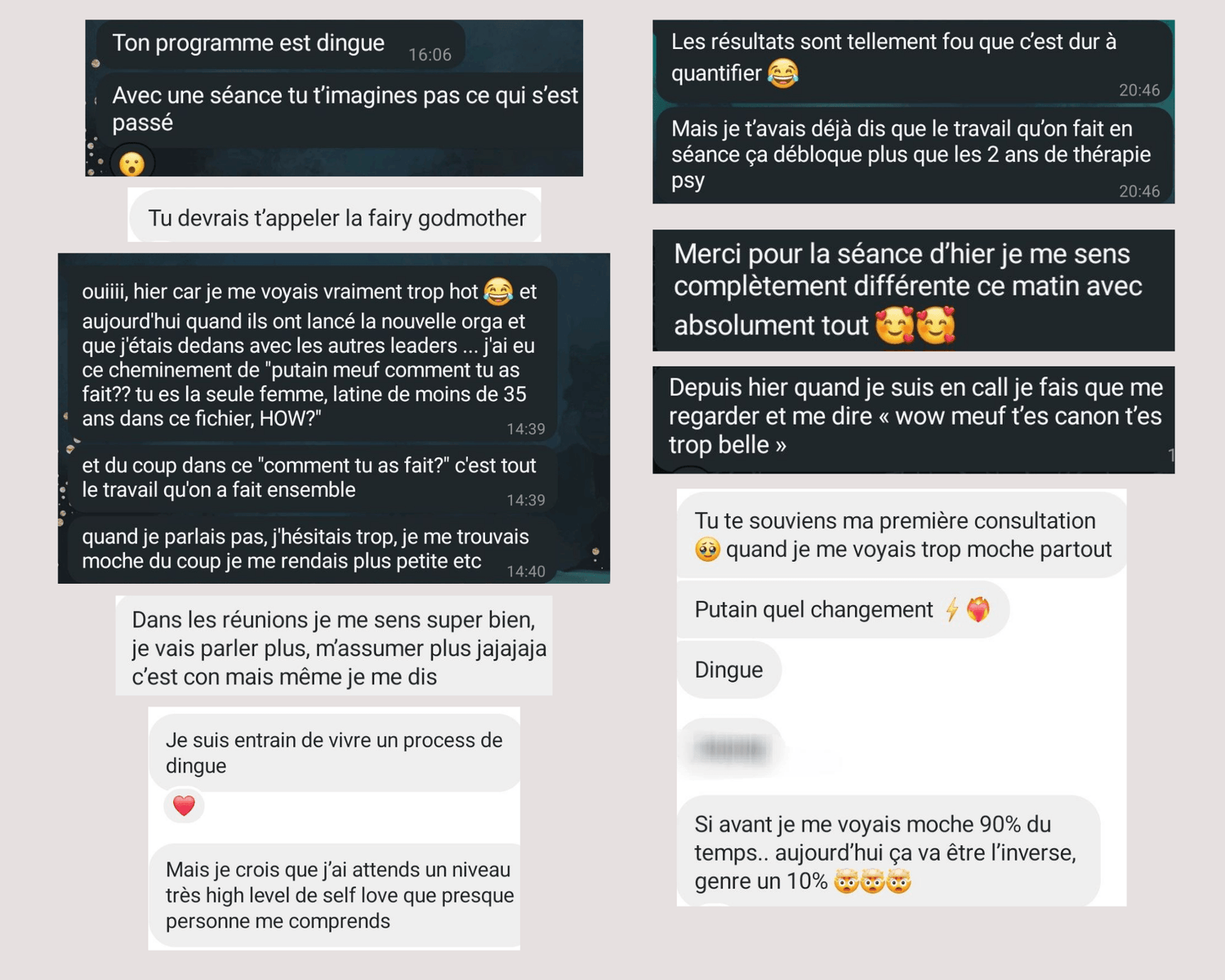 Que ce soit ton enfant intérieur, la peur de changer, ce qu'on a pu te dire dans ta vie, les événements que t'as traversés: Ces séances travaillent sur tous les plans.